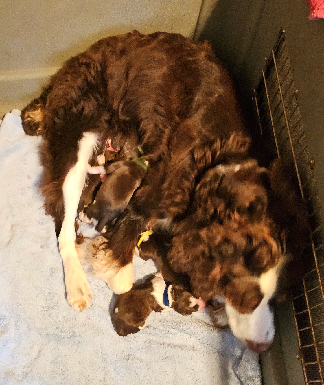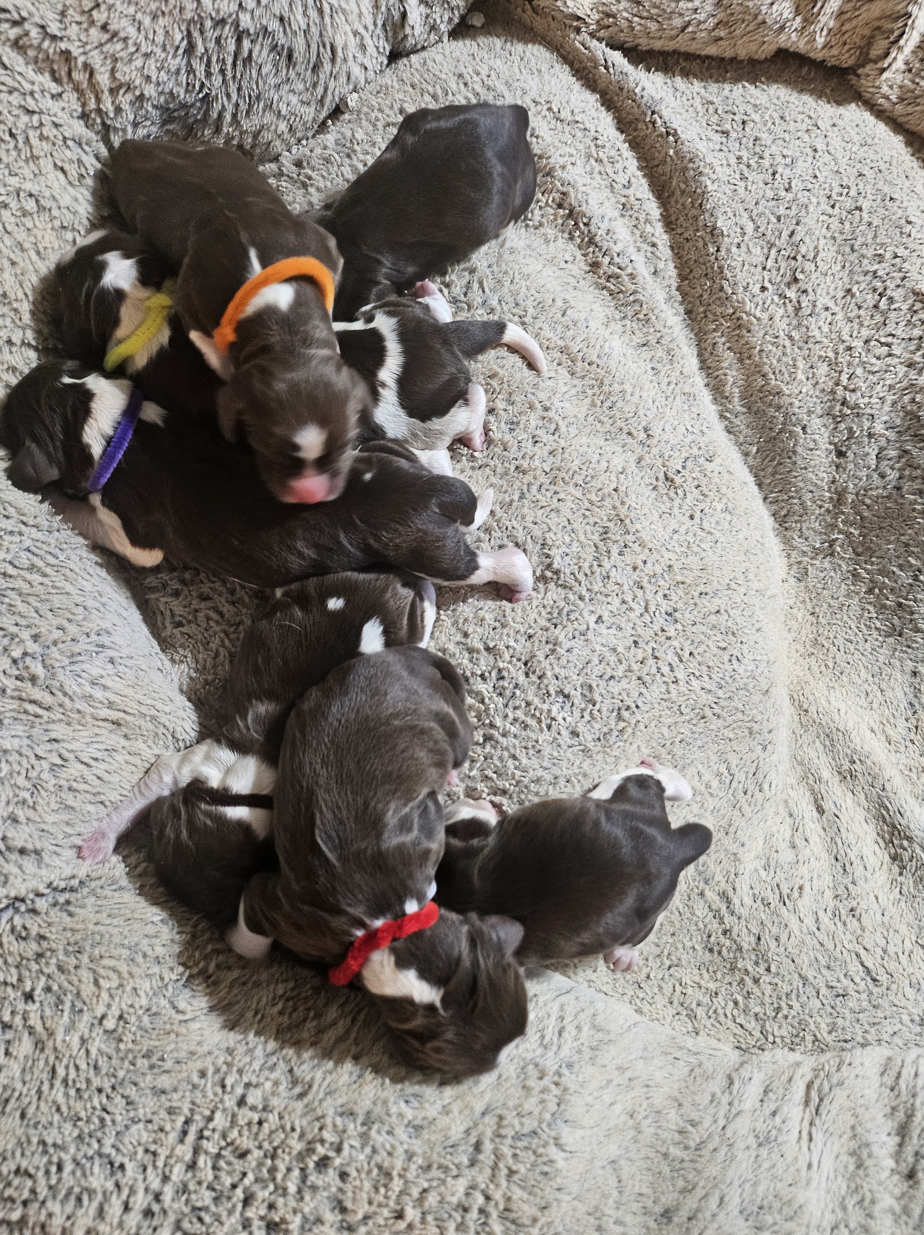 Jan 8th. Tails docked, Dewclaws removed, Vet wellness check.