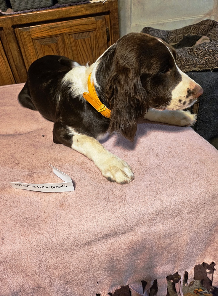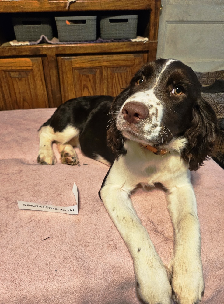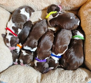 Kimra’s Jan 5, 2025 Litter Born Jan 5, 2025 Ready for new homes Early March. They are Liver & WhiteNone available now. All sold Born 5 Jan Females – Orange, Red, Yellow, Violet, GreenMales – Black, Blue Kimra – MotherSquirt II – Sire 5 months old BlackOrangeYellow Share this: Share on X (Opens in new window) X Share on Facebook (Opens in new window) Facebook Like Loading...