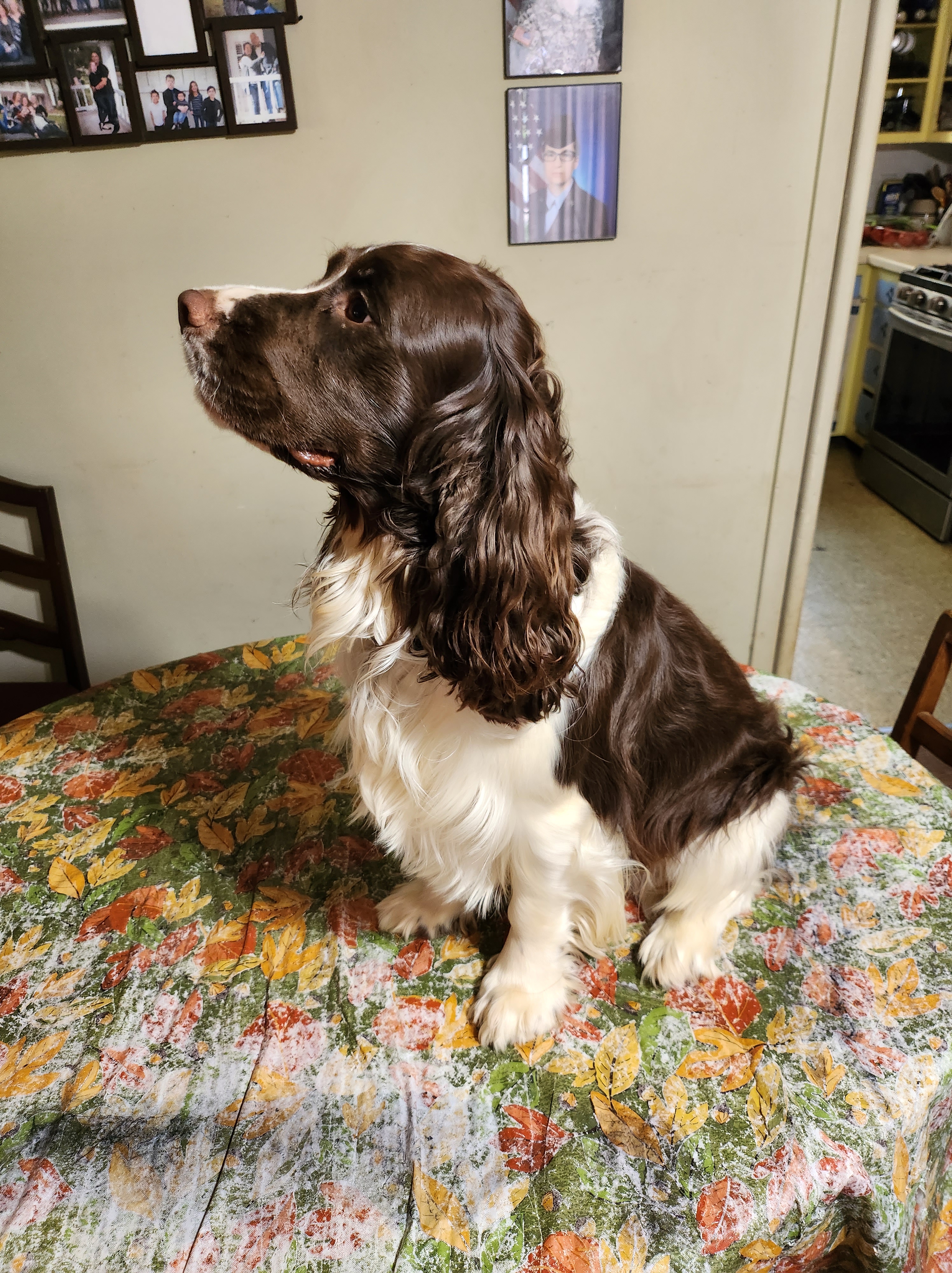 | Squirt of Hampton Roads AKC # SS22240707 [Squirt] is our first Liver and White male. He was born in 11/7/2020. He has a beautiful long coat and wins the hearts of those who meet him. We picked her up from a breeder in Hampton VA as a 8 weeks year old pup. He has made several litters of pups both Black and White and Liver and White. Squirt is Embark and AKC DNA tested and OFA certified for his joints and waiting for the eye appt for that certification. Squirt plays with the other dogs well and enjoys the back yard. Like the others He thinks the place to be is beside me and will be normally be with Me (Rod) either in my recliner or bed. If I am at the computer his place is right beside me. He rides great and leads well. He does fetch but is not as fast as our girls. On his last vet visit he weighed 50 lbs. |
